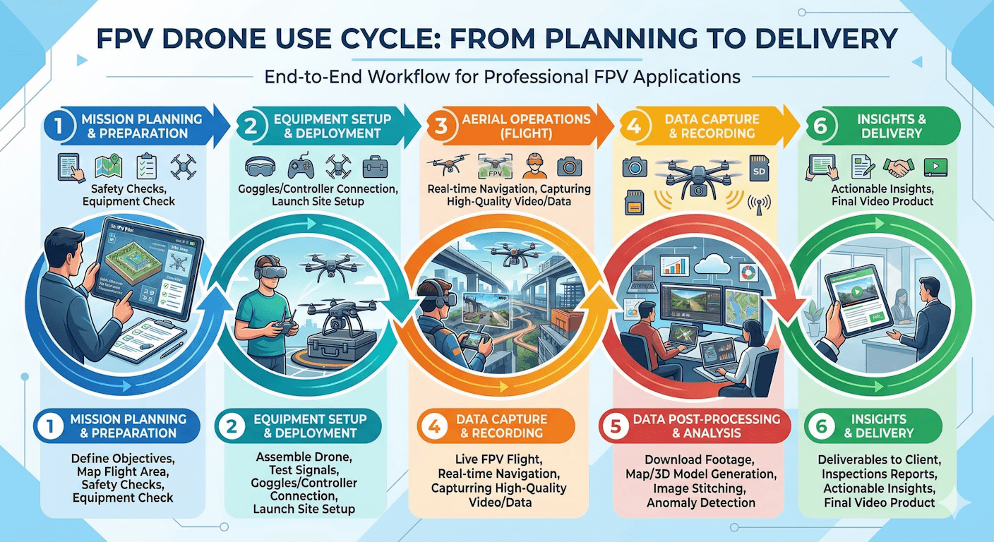 In the modern industrial landscape, First-Person View (FPV) technology is more than just a camera in the sky—it’s a precision tool for data-driven decision-making. Our end-to-end workflow ensures that from the moment we map your site to the final delivery of actionable insights, every flight is governed by safety, technical excellence, and a commitment to high-resolution accuracy. See your project from a perspective that traditional methods simply can’t reach.